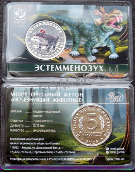 → Официальный Жетон ММД. 5 червонцев 2025 год. Эстемменозух. Серия - Исчезнувшие животные. UNC