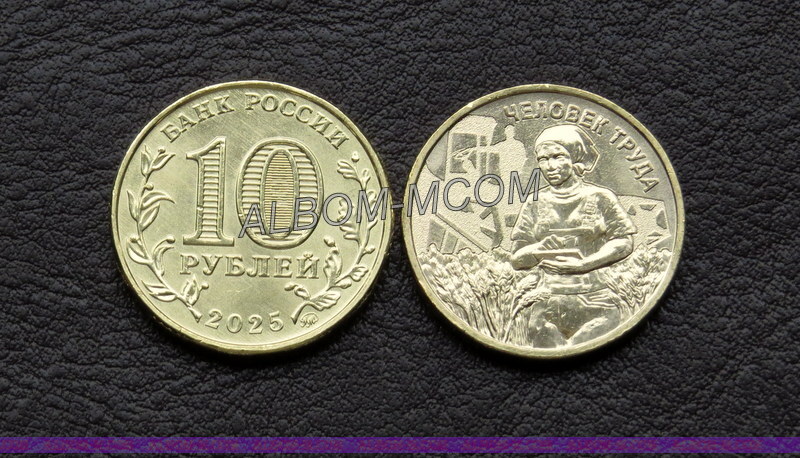 → 10 рублей 2025 год. Человек труда. Работник сельского хозяйства. UNC.