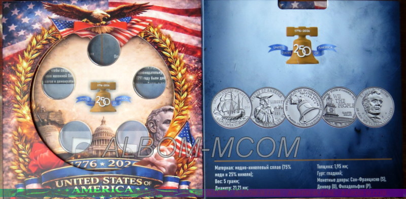 → Альбом капсульный для монет 25 центов 2026 год. Серия 250 лет независимости США.