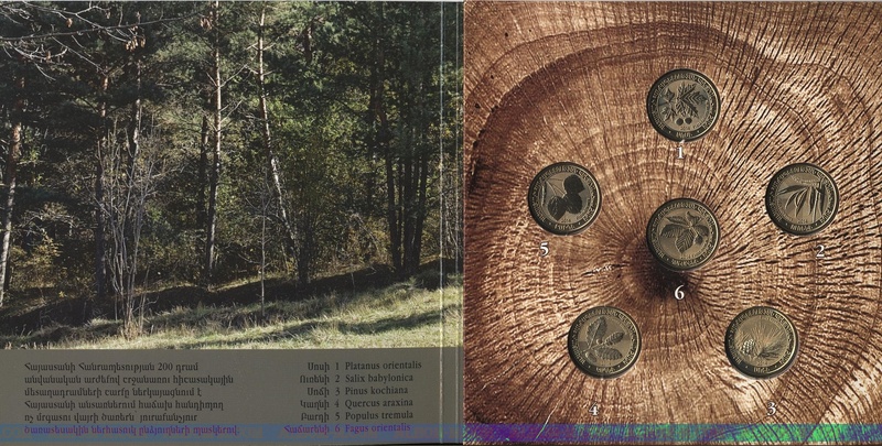 → Армения Официальный набор 6 монет 200 драм 2014 год. Дикие деревья Армении. В Буклете (6шт) UNC.