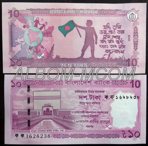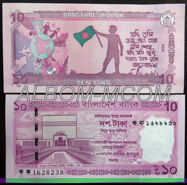 ГлавнаяБАНКНОТЫАзияБангладеш → Бангладеш 10 така 2026 год. Пресс. UNC