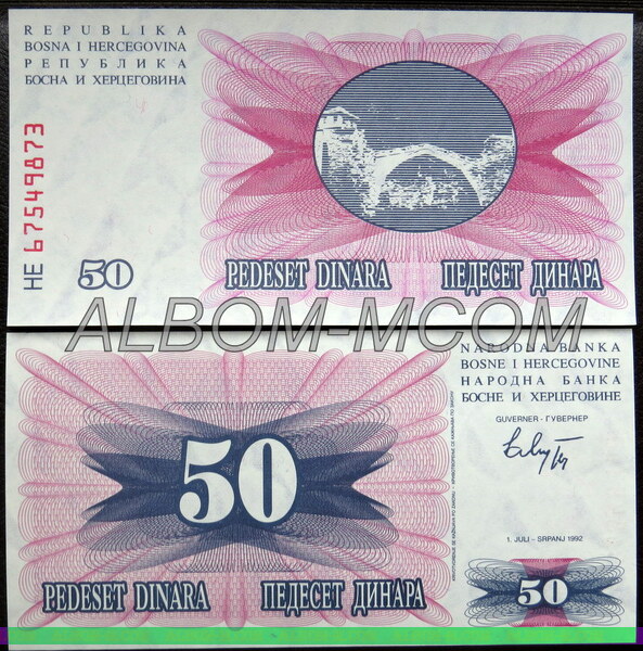 → Босния и Герцеговина 50 динар 1992 год. Пресс. UNC