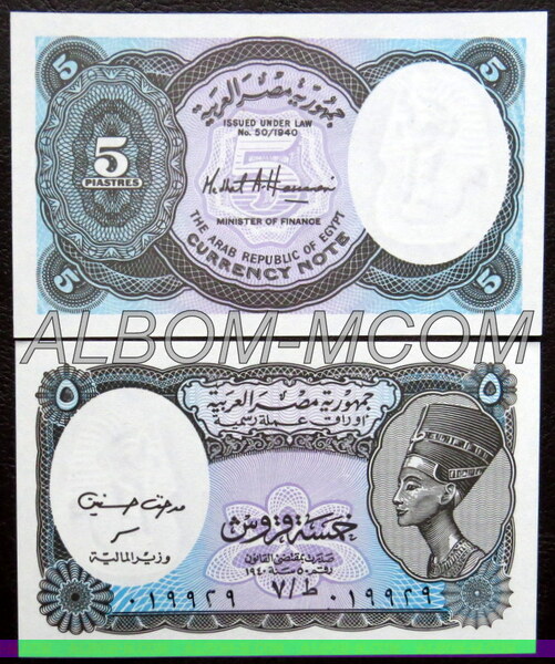 ГлавнаяБАНКНОТЫАфрикаЕгипет → Египет 5 пиастров 2002 год. UNC. Пресс