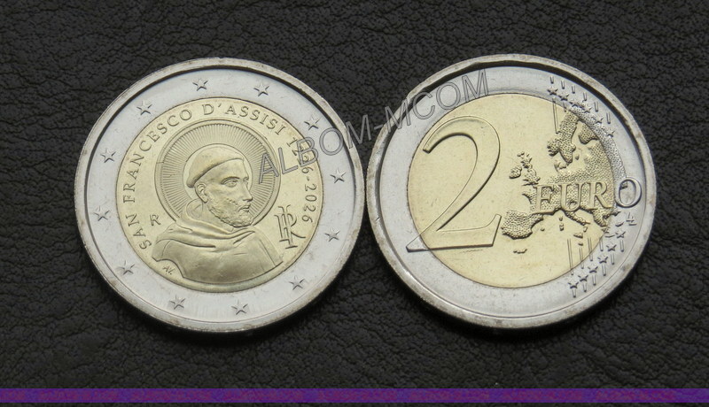→ Италия 2 евро 2026 год. Святой Франциск Ассизский. UNC