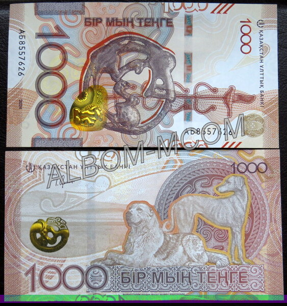 → Казахстан 1000 тенге (2024) 2025 го. Охотничьи собаки. Сакский стиль. Пресс. UNC.