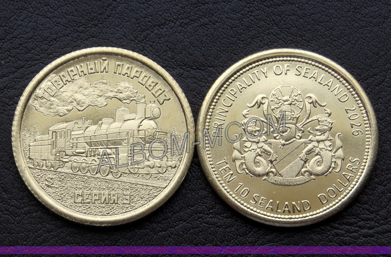 → Княжество Силенд 10 долларов 2026 год. Товарный Паровоз. Серия 3. UNC