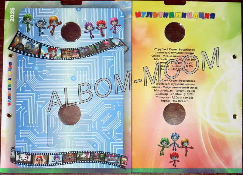 Лист в Альбом 25 рублей 2025 год. Фиксики. Цветная+простая