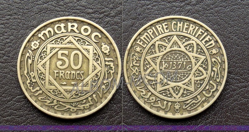 → Марокко 50 франков 1952 год. 8-конечная звезда. XF+