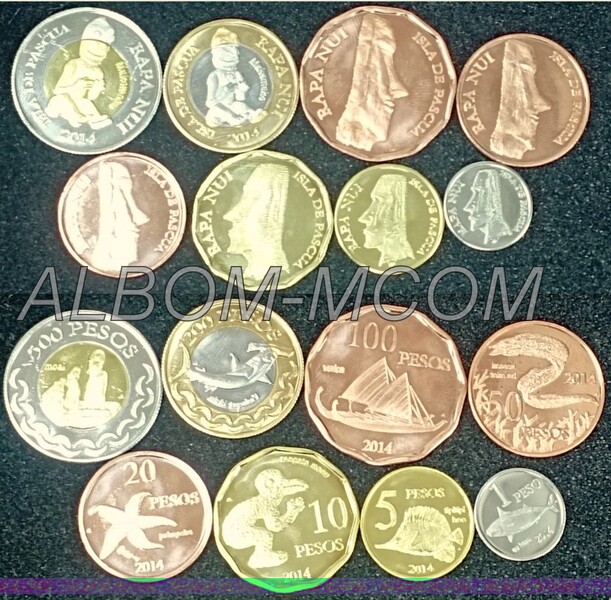 → Остров Пасхи 2014 год. Набор из 8 монет 1, 5, 10, 20, 50, 100, 200 и 500 песет. UNC