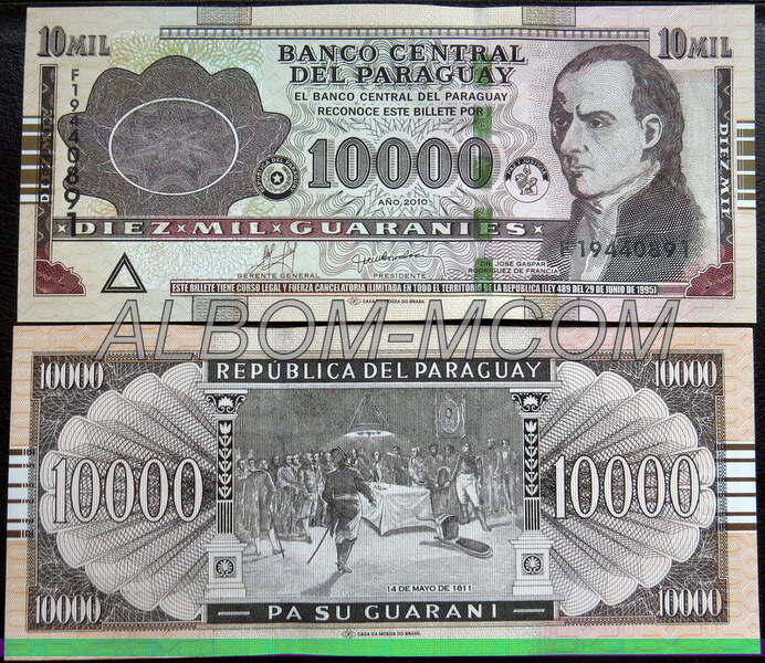 ГлавнаяБАНКНОТЫАмерикаПарагвай → Парагвай 10000 гуарани 2010 год. Пресс. UNC
