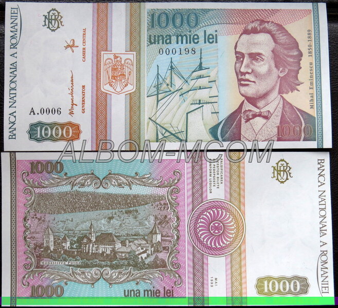 Румыния 1000 лей 1993 год. Серия А. Эминеску. Пресс. UNC