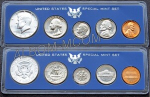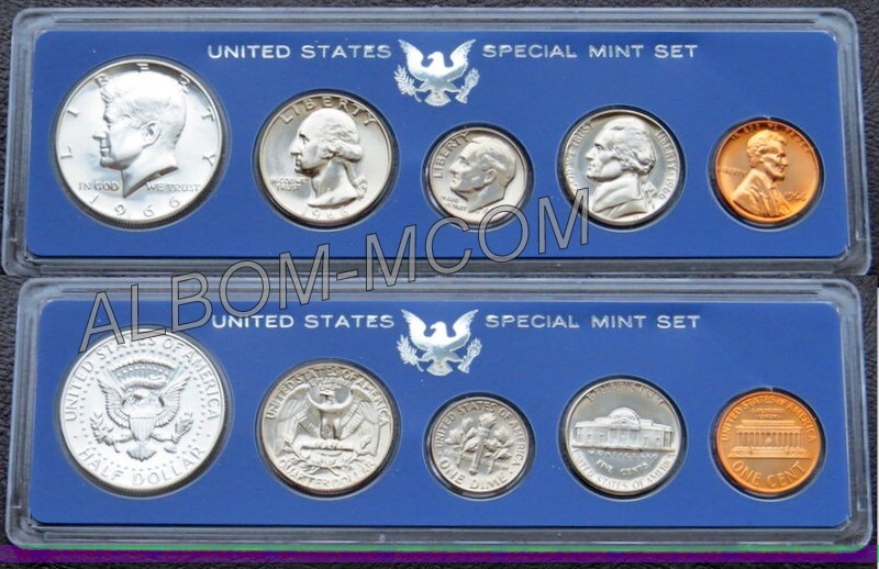 → США Годовой набор 1966 год из 5 монет: 1, 5, 10(дайм) 25 и 50 центов(Кеннеди-Серебро). Special Mint Set. Пруф-лайк.