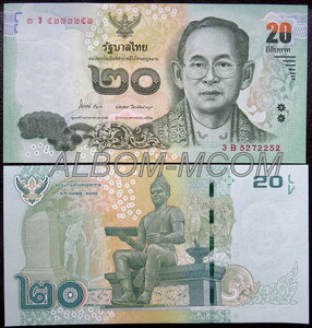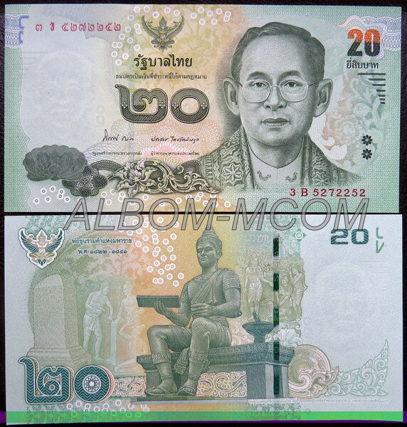 ГлавнаяБАНКНОТЫАзияТаиланд → Таиланд 20 бат 2013 год. ПРЕСС. UNC