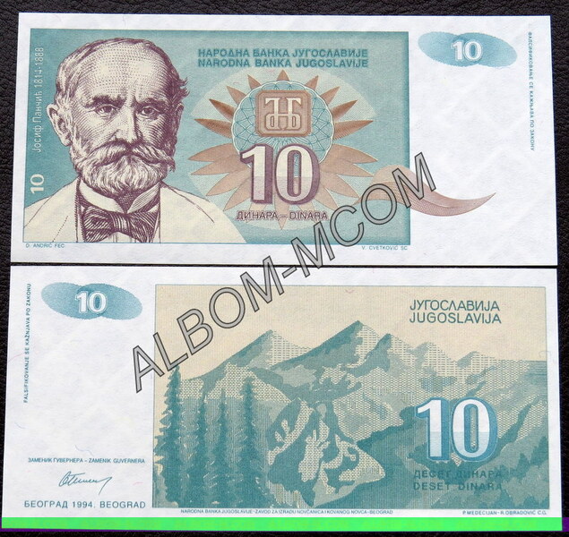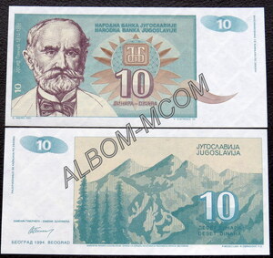 ГлавнаяБАНКНОТЫЕвропаЮгославия → Югославия 10 динар 1994 год. Пресс. UNC